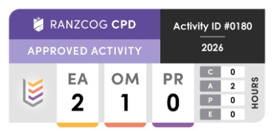 RANZCOG Fellows, who have provided their RANZCOG ID as part of their registration process, will have CPD points automatically uploaded to their profile after the event. Other RANZCOG members can claim independently.